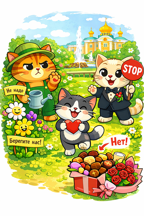 Нет-нет-нет! Нам не нужно так много цветов и сладостей! 🥺🌷 Цветы лучше пусть спокойно себе растут 🌱🌿, а конфеты подождут другого повода. 🍫😌